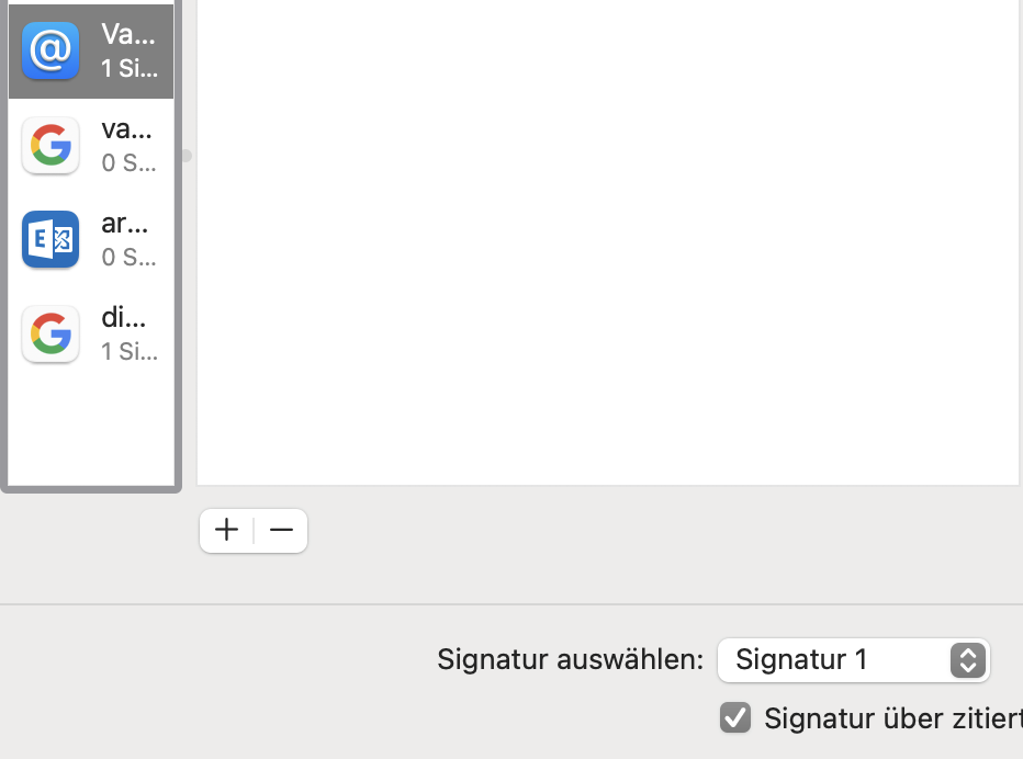 - klicke auf das kleine + und füge eine Signatur hinzu